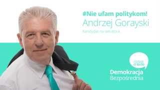 Nigdy nie byłem politykiem. Jestem zwykłym obywatelem, tak jak ty. Rolę senatora rozumiem jako nieustanny kontakt z wyborcami i wykonywanie ich woli oraz głosowania zgodnie z ich wskazaniami. Wiadomo - senator ma duże uprawnienia polityczne i prawne. Wykorzystam je, aby zrealizować konkretne zadania, z których już za rok zostanę rozliczony. Zadanie zlecisz mi przez Internet na specjalnie przygotowanej stronie oraz w biurze w okręgu. To ty powiesz mi jak głosować, a nie ja Tobie jak masz żyć.