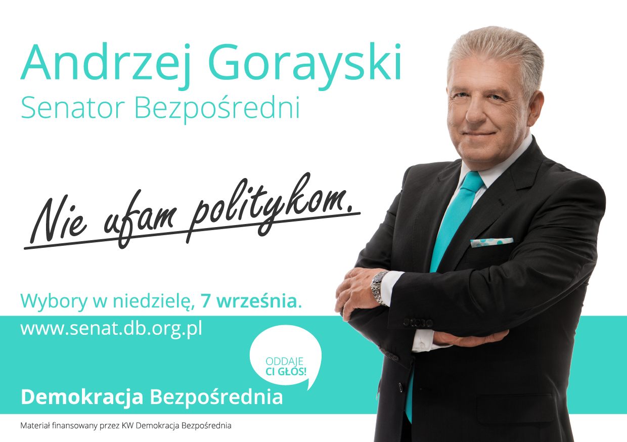 ZRÓB PSIKUSA PARTIOM POLITYCZNYM Z SEJMU. Masz wybór. Nie musisz już skreślać karty wyborczej i oddawać nieważnego głosu. Frekwencja będzie niska. Jeśli zagłosujesz na Andrzeja Gorayskiego może być zaskoczenie dla systemu. Zrób spacer do urny wyborczej. Tylko tyle wystarczy by pokazać politykom czerwoną kartkę. W tych wyborach istnieje realna szansa aby pokonać PIS i PO.